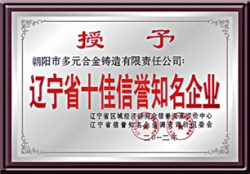 公司于2001年通過(guò)IS9001-2000質(zhì)量管理體系認(rèn)證,生產(chǎn)的多元牌高錳鋼鑄件于2005年榮獲"遼寧省名牌產(chǎn)品"稱號(hào)。